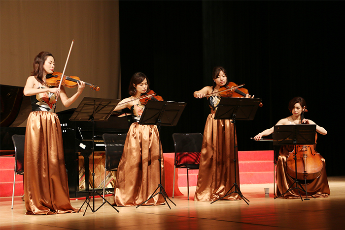 12月1日,日本东京青年古典乐团到beat365官网进行“2018重拾经典记忆昆明音乐会”公益演出。本次演出由昆明聂耳研究会、beat365英国官方网站承办。昆明聂耳研究会会长、昆明市政协原主席、昆明登协名誉主席田云翔,昆明聂耳研究会副会长、昆明市政协原副秘书长周忻,beat365英国官方网站副校长熊晶等领导嘉宾和beat365官网1100余名师生共享音乐盛宴。 今年是中日缔结和平友好条约40周年,也是昆明市和日本藤泽市缔结友好城市37周年,以音乐会作为文化交流活动,让师生在简朴宁静的氛围当中享受音乐的时光,共同秉承爱好和平的不变之心。 本场音乐会以弦乐四重奏和双钢琴的方式共演奏了13首中日经典名曲。音乐会上半场演奏的中国曲目《金蛇狂舞》、《梅娘曲》、《告别南洋》,改编自我国人民音乐家聂耳。演奏《梅娘曲》和《告别南洋》时,东京青年乐团特别邀请了南侨机工合唱团,采用中外结合的方式联合演出,歌曲曲调时而凄凉婉转、时而激进亢奋,以音乐之声谱写出南洋青年爱国、救国的最美篇章。以双钢琴弦乐四重奏的方式演奏的交响音乐作品《黄河钢琴协奏曲》,历久弥新,催人奋进。双钢琴版的《梁山伯与祝英台》旋律悠扬婉转,感染力极强,呈现中国经典音乐旋律以飨听众。 下半场乐团带来了八首日本经典曲目中,除了宫城道雄所做的日本民族传统曲目《春之海》外,还有很多中国观众熟悉的作品。久石让的经典名作《人生旋转木马》和《菊次郎的夏天》都是宫崎骏漫画中的音乐,乐团通过钢琴五组奏的方式将改编过的曲目进行特别呈现,让现场观众回忆满满,久久不能忘怀。两首曾入选20世纪感动日本的十大名单的《良日启程》和《津轻海峡冬景色》以乐团演奏的方式加以呈现,悦耳动听的旋律给听众一种荡气回肠,心旷神怡之感。音乐会最终在青年古典乐团和听众的互动曲目《昂首向前》中结束,该乐团带来的精彩演出获得听众的阵阵掌声。