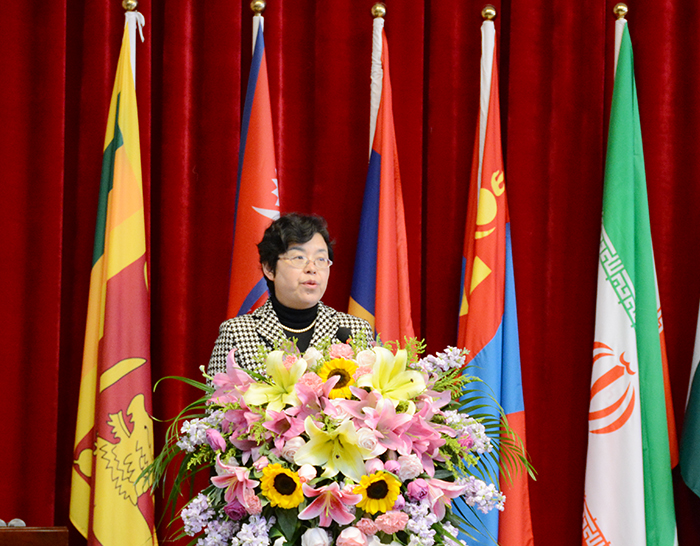 熊晶副校长致辞指出,beat365英国官方网站高度重视国际间学生和青年的交流,先后与国外72所高校和教育机构开展交流合作,相续成立曼德勒华文教育中心、东盟商学院、爱尔兰中心等10多个国际交流平台,留学生260余名。国际学院、中国-上合组织青年交流中心联络处的成立标志着学校国际合作交流迈上了一个新的台阶,这将进一步推进学校教育国际化进程。