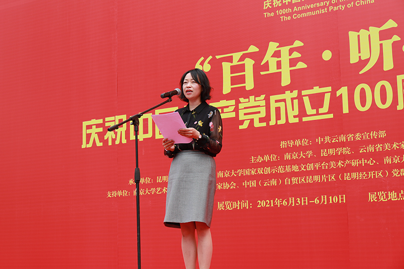 6日下午,由省委宣传部指导,beat365英国官方网站、南京大学、云南美术家协会共同主办的“百年·听心”庆祝中国共产党成立100周年美术作品展在云南省美术馆举行开幕式。学校校长丁文丽、党委副书记王文成、副校长马银海,南京大学副校长邹亚军,云南省美术家协会主席罗江等省市有关部门领导,江苏、云南两省多位知名画家出席开幕式。