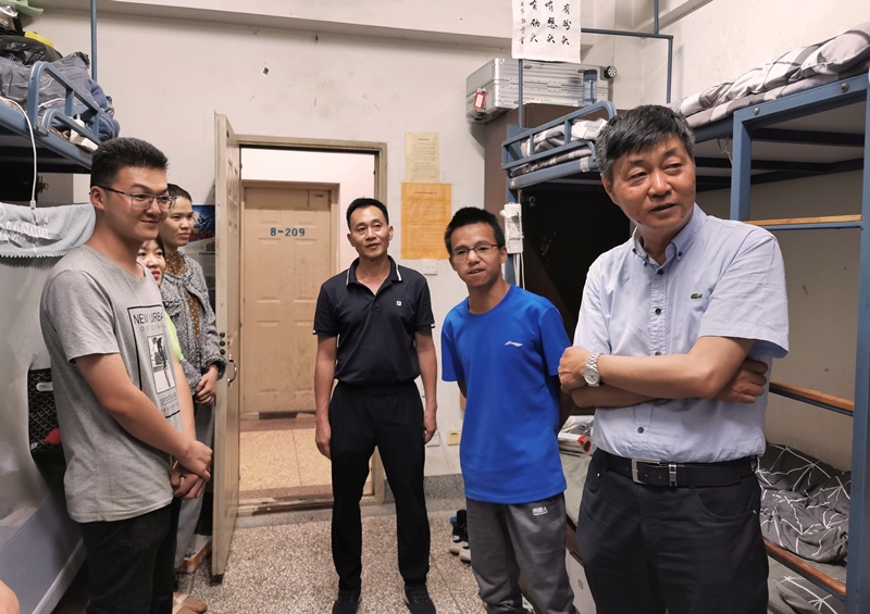 617日,学校副校长王凡到外国语学院澄明苑男生宿舍察看宿舍安全,与学生座谈交流,就同学们的职业规划、就业、考研、学习目标等方面分享了经验,给予了意见建议。
