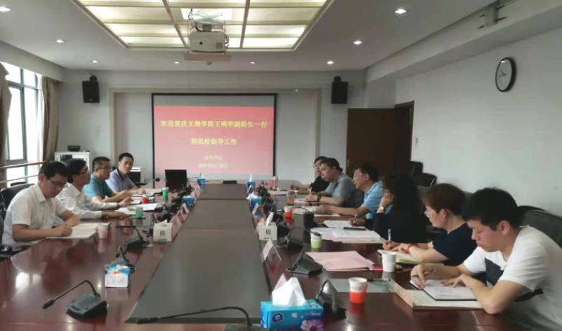 6月21日,重庆文理学院王明华副院长率领研究生处处长卢成武、研究生处学科建设办公室主任刘辉、研究生处招生办公室主任罗福林到学校就研究生教育相关工作进行交流调研。学校副校长马银海带领研究生部负责人及全体成员热情接待了王明华副院长一行。