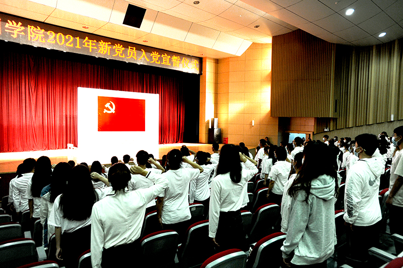 6月28日下午,学校举行中国共产党成立 100 周年新党员入党宣誓仪式。学校党委书记金幼和出席仪式并领誓,党委副书记王文成主持宣誓仪式。