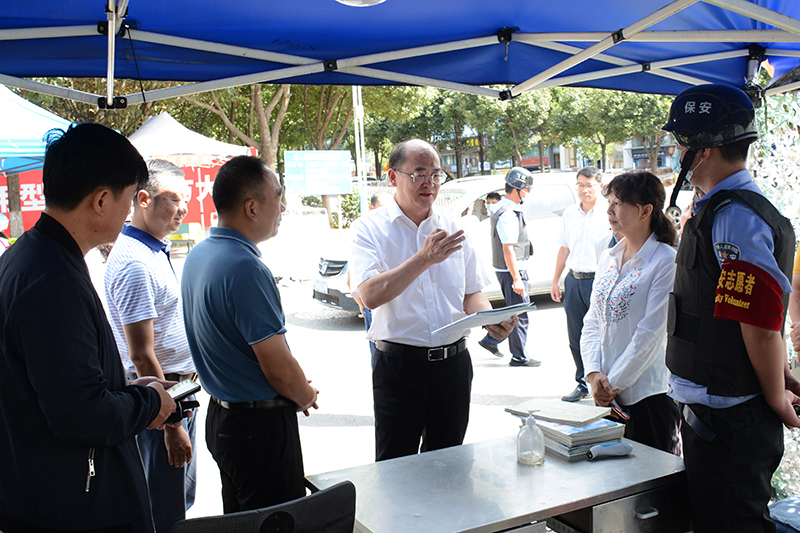 金幼和一行前往学校南门、化学化工学院、学生食堂、学生宿舍、青年中心、图书馆、监控中心等地进行了实地检查,对学校常态化疫情防控,校园治安防范,门禁安全管控,实验室、场馆安全管理,食品卫生安全以及节日期间学生在校学习生活等安排保障情况进行了全面检查。