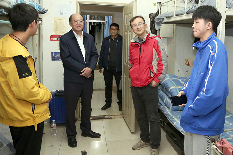 金幼和与学生亲切交谈,详细了解学生在校期间的学习、生活情况。他勉励新生同学要尽快适应大学生活,叮嘱毕业生同学要主动做好毕业规划和就业准备。同时,认真听取同学们对学校教育教学、管理服务等方面的意见建议,现场责成相关部门一一研究解决。