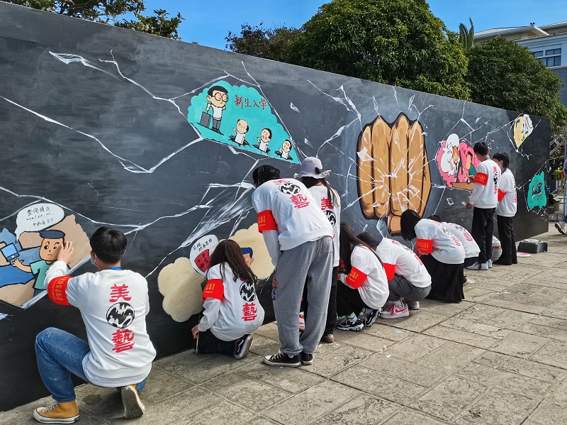 活动现场,出席活动的领导、嘉宾参观了学校师生设计创作的反电诈文创产品、手绘文化墙、手绘海报。昆明公安通过发放《全民反诈宣传手册》、张贴海报、悬挂标语、摆放展板、发放反电诈文创产品、开展法律知识咨询等形式,现场推广“金钟罩”反诈小程序、国家反诈中心APP,向全体学生传授防电诈、防盗抢、防传销的实用技巧。