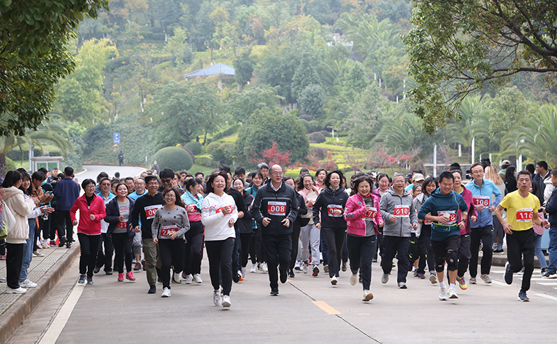 开幕式结束后,金幼和书记、丁文丽校长等校领导一同参加了教职工环校园跑,学校近1000余名教职工参加。