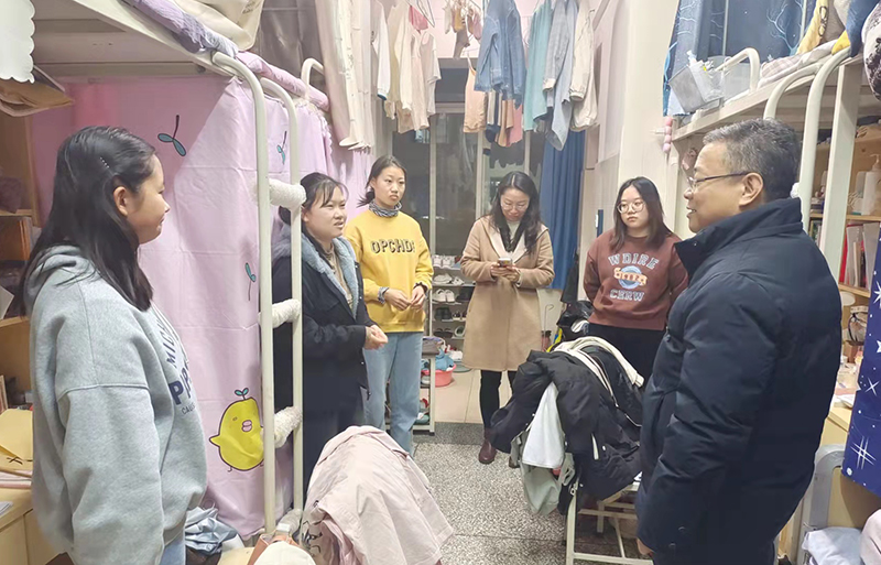 为进一步贯彻落实领导干部直接联系服务师生制度,扎实推动党史学习教育和“我为师生群众办实事”实践活动走深走实,112426日晚,学校党委副书记王文成带领机关和相关院系值班同志,到体育学院、校团委、校医院、人文学院等学生宿舍进行走访,仔细查看了解宿舍来访登记管理、环境卫生、基础设施、消防安全、学生就医问诊等情况,并深入宿舍与同学热情交流,详细询问了解同学们的学习、生活等情况,认真倾听同学们提出的困难、需求和建议。在交流中,王副书记勉励同学们要做好人生规划,努力学习、不负韶华,珍惜大学难得的宝贵时光,不辜负家长和老师的期望。同时叮嘱大家要养成晨读晨练的好习惯,加强专业实践,练就自身过硬本领,要爱护寝室,保持良好的宿舍环境,养成良好的生活学习习惯。