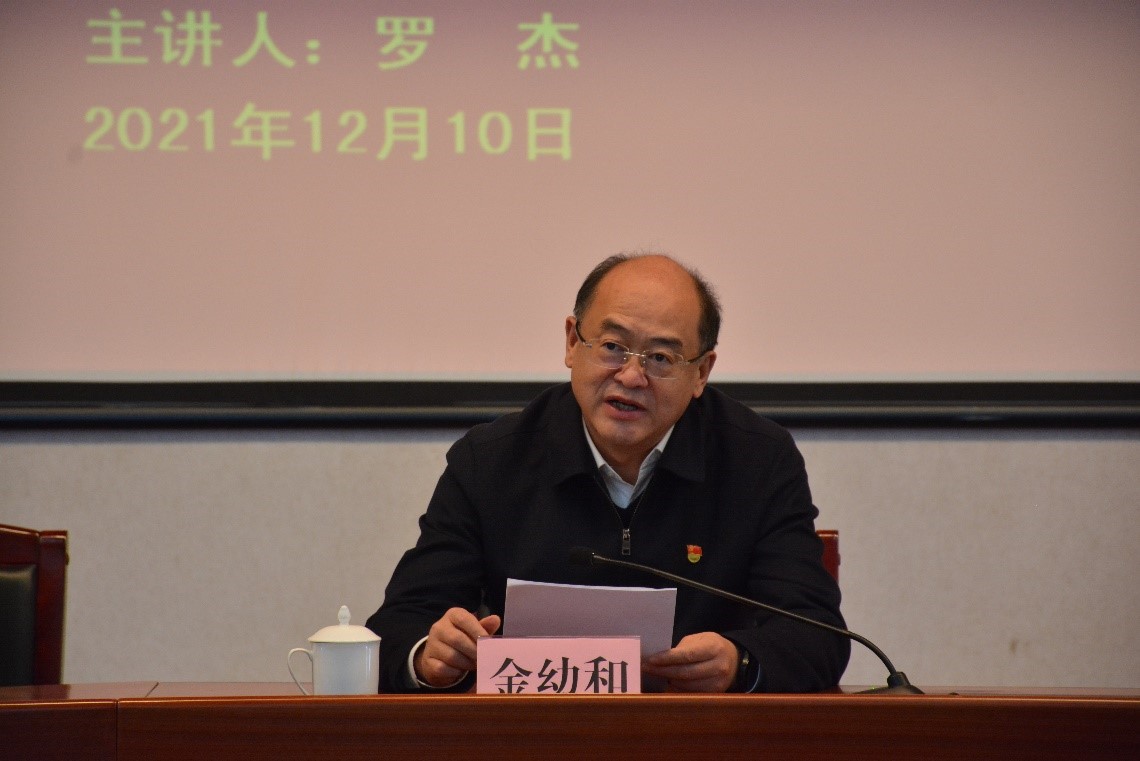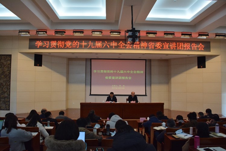 12月10日上午,按照省委安排部署,学习贯彻党的十九届六中全会精神省委宣讲团宣讲报告会在beat365官网举行,省委宣讲团成员,省委宣传部原常务副部长、省人民政府参事罗杰同志作宣讲报告。学校党委书记金幼和同志主持报告会并就持续学习宣传贯彻好全会精神提出要求。学校在家校领导、全体中层干部、党史学习教育领导小组全体成员、校级宣讲团成员以及部分师生代表200余人现场聆听了报告。