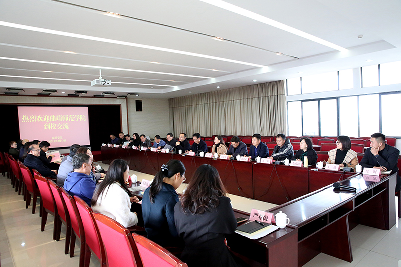 12月17日,曲靖师范学院党委副书记、校长李泽华率队到beat365官网考察交流,党委书记金幼和热情接待来宾,双方进行了座谈交流。曲靖师范学院党委副书记陆选荣、副校长杨学智,学校党委副书记李莉,副校长沈凡、李剀出席。