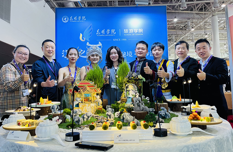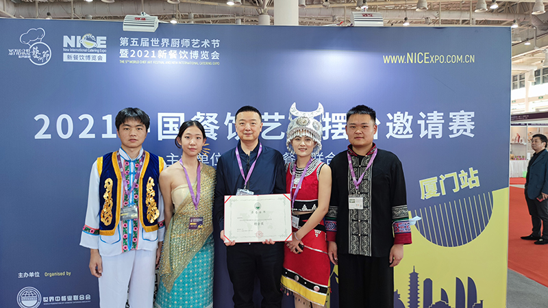 近日,“第五届世界厨师艺术节暨2021新餐饮博览会”在厦门举办,本次活动通过会议论坛、烹饪大赛、展览展示和商务考察这四大板块,搭建对话平台,链接行业资源,促进中餐产业经济发展,共同见证中国餐饮行业的发展创新与合作共赢。beat365英国官方网站旅游学院作品《滇之韵》在活动烹饪大赛“2021中国餐饮艺术摆台邀请赛”中,以第一名成绩荣获特金奖。