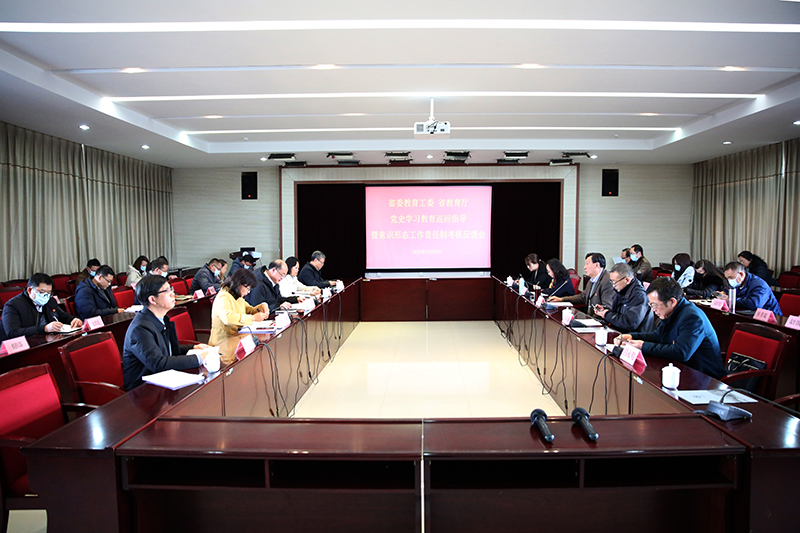 1227日,省委教育工委、省教育厅党史学习教育第七巡回指导组到校开展第三轮巡回指导暨2021年意识形态工作责任制检查考核。学校党委书记金幼和,党委副书记、校长丁文丽,党委副书记李莉、王文成,副校长、宣传部部长李剀出席考核汇报会和反馈会。