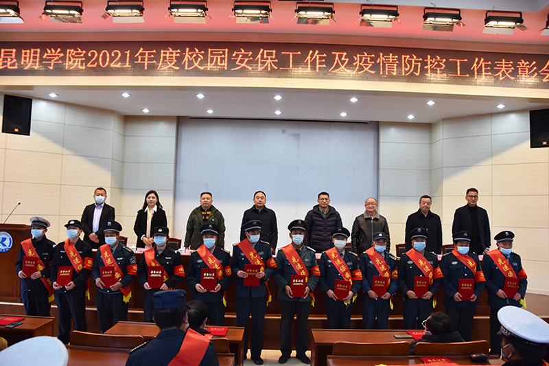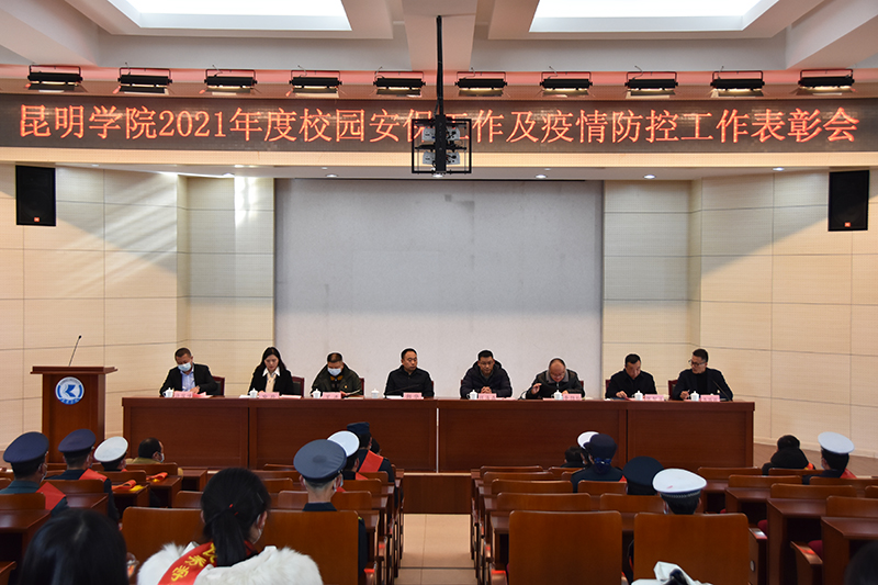 12月28日,学校在办公楼D区三楼报告厅召开beat365英国官方网站2021年度校园安保工作及疫情防控工作表彰大会。党委委员、副校长郭华出席会议并讲话。办公室、学生工作部、保卫处等部门负责人,云南飞虎保安服务有限公司负责人,保卫处全体干部职工、保安、学生治安服务队员参加会议。
