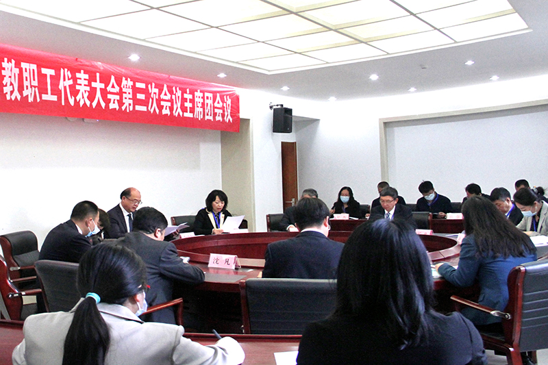 3月30日,学校第三届教职工代表大会第三次会议在办公楼D区报告厅胜利召开。学校党委书记金幼和出席会议并讲话,党委副书记、校长丁文丽作《贯彻新发展理念 落实“十四五”规划任务 全面推进学校高质量发展》行政工作报告。党委副书记、工会主席王文成主持会议。