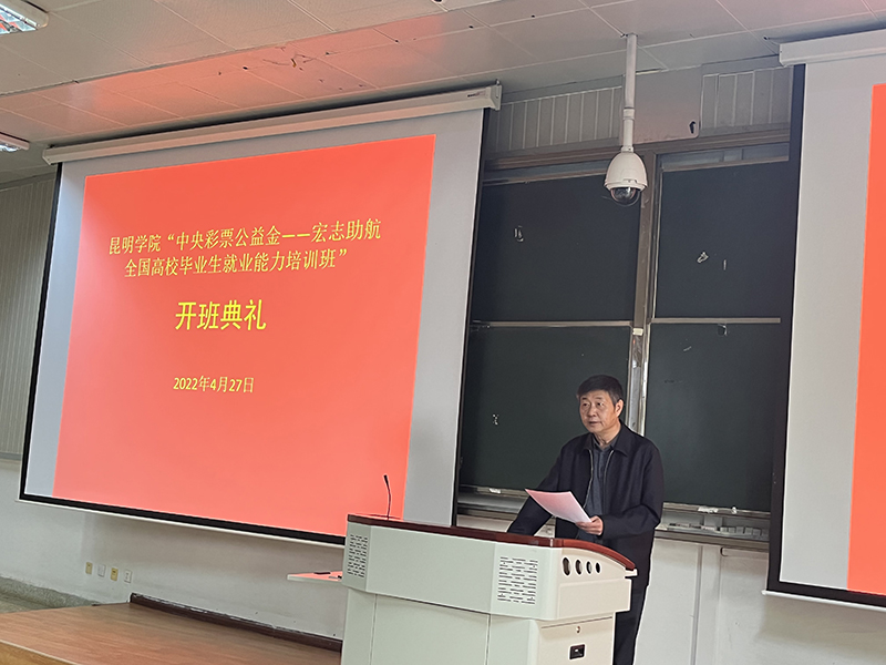 为贯彻落实全国2022届高校毕业生就业第三次调度视频会议精神,全力促进beat365官网2022届毕业生就业工作,4月27日,beat365英国官方网站“中央专项彩票公益金——宏志助航全国高校毕业生就业能力培训班”在洋浦校区、昆师路校区同时开班,beat365英国官方网站党委委员、副校长王凡出席开班典礼并讲话,云南大学就业指导中心主任杨云川到场致辞。