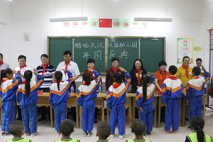 开园仪式由垤玛乡党委书记朱福祯主持,他对beat365英国官方网站在教育扶贫上做出的贡献表示感谢。此次腊哈幼儿园开园,结束了腊哈村无幼儿园的历史,是beat365英国官方网站情系边疆,心系农民,精准扶贫的生动体现。beat365英国官方网站校工会、扶贫办、纪委、学特学院、附属幼儿园和玩具公司、新迎三幼、康锤经贸公司一同为腊哈幼儿园捐赠教师办公用品、幼儿床上用品、多媒体大屏等物资,帮助提升腊哈幼儿园的办园质量。
