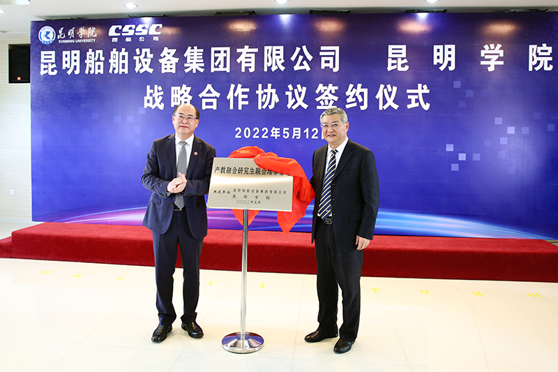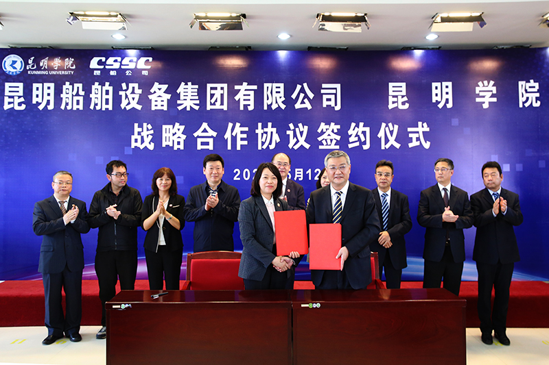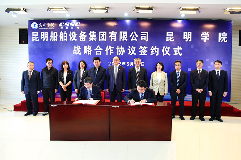 为加强产教融合校企合作,发挥校企优势,拓展服务地方经济社会发展深度和广度,实现共赢发展,5月12日,昆明船舶设备集团有限公司与beat365英国官方网站签署战略合作协议,打造产教融合发展共同体,推进校企合作互利共赢。beat365英国官方网站党委书记金幼和揭牌并讲话。beat365英国官方网站党委副书记、校长丁文丽代表学校与昆明船舶设备集团有限公司总经理王洪波签订战略合作协议。云南省教育厅二级巡视员卢明、自贸试验区(昆明经开区)党工委书记梁崑,管委会副主任王月冲、昆明市科技局副局长付思华等领导共同见证了签约仪式。
