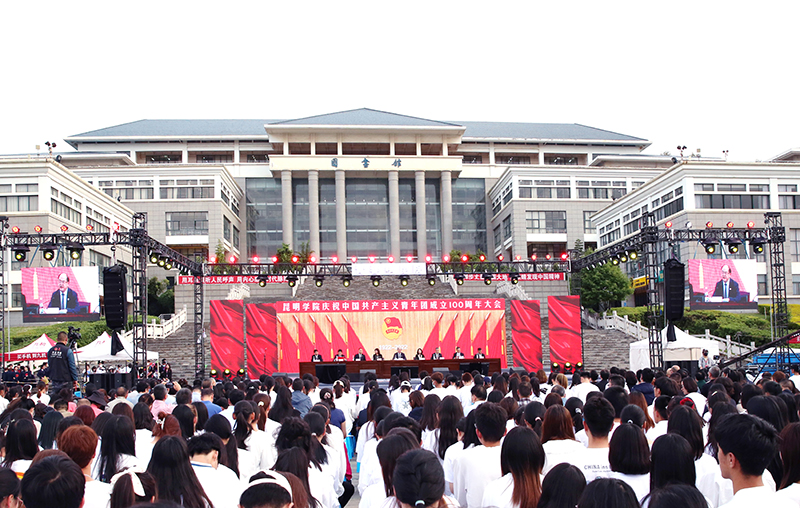 为深入学习宣传贯彻习近平总书记在庆祝中国共产主义青年团成立100周年大会上的重要讲话精神,重温共青团在不同历史时期团结带领一代代青年坚定不移跟党走、为党和人民事业奋斗的光辉历程,激励全校青年继承光荣传统,以踔厉奋发、勇毅前行的姿态,积极投身推动学校高质量发展,朝着努力把beat365英国官方网站建设成为特色鲜明的综合性应用型高水平大学而奋斗,5月19日晚,学校在聂耳广场隆重举行庆祝中国共产主义青年团成立100周年大会暨“青春耀昆院”文艺晚会。
