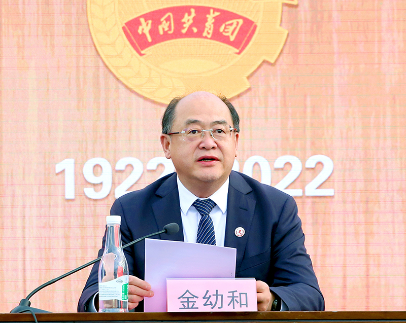 在庄严的国歌声中,大会正式开幕。金幼和讲话,代表学校党委向一年来在学校共青团工作中作出突出贡献,受到表彰奖励的先进集体和个人表示热烈祝贺,向全校广大共青团员、青年朋友和全体团干部,致以诚挚的问候和美好的祝愿。金幼和全面回顾了党领导下中国青年运动的光辉历程,深入阐释了习近平总书记的重要讲话精神,深刻分析了当前学校发展的形势,充分肯定了beat365官网青年在学校改革发展中作出的贡献,并结合学习贯彻习近平总书记的重要讲话精神和学校实际,向学校各级团组织、广大团干部和全体团员青年,提出三点希望:一是希望全校各级团组织牢记初心使命,更加自觉坚定地引领团员青年建功新时代、奋进新征程;二是希望广大团干部发挥好示范引领和模范带头作用,努力锻造成为对党忠诚、心系青年、勇于担当、作风过硬的青年马克思主义者;三是希望学校广大团员青年胸怀理想,自信自强,不断奏响新时代昆院学子勇毅笃行、堪当大任的青春乐章。