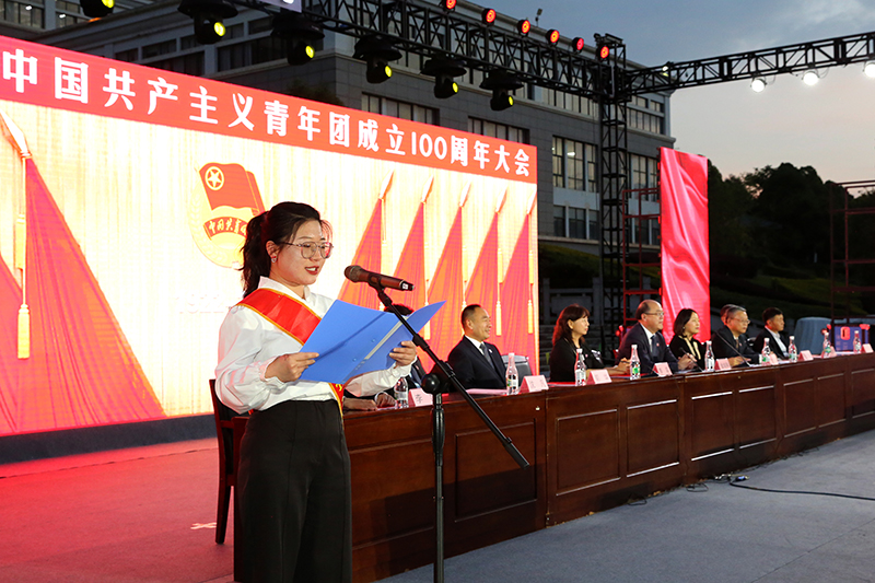 丁文丽主持大会时指出,为了鼓励和促进青年学生全面成长成才,学校坚持把培育典型、宣传典型、关爱典型作为加强和改进团员青年思想政治教育工作的重要抓手,每年开展“树典型引路,立榜样育人”的beat365英国官方网站“青春之星”等先进个人和集体评选活动。今天我们隆重庆祝中国共产主义青年团成立100周年,对先进集体和优秀个人予以表彰,希望受表彰的集体和个人充分发挥青春榜样示范引领作用,在学校党委的坚强领导下,脚踏实地、振奋精神,扎实推进作风革命、效能革命,团结带领学校广大青年学子在beat365英国官方网站高质量发展中谱写更加壮丽的青春之歌。