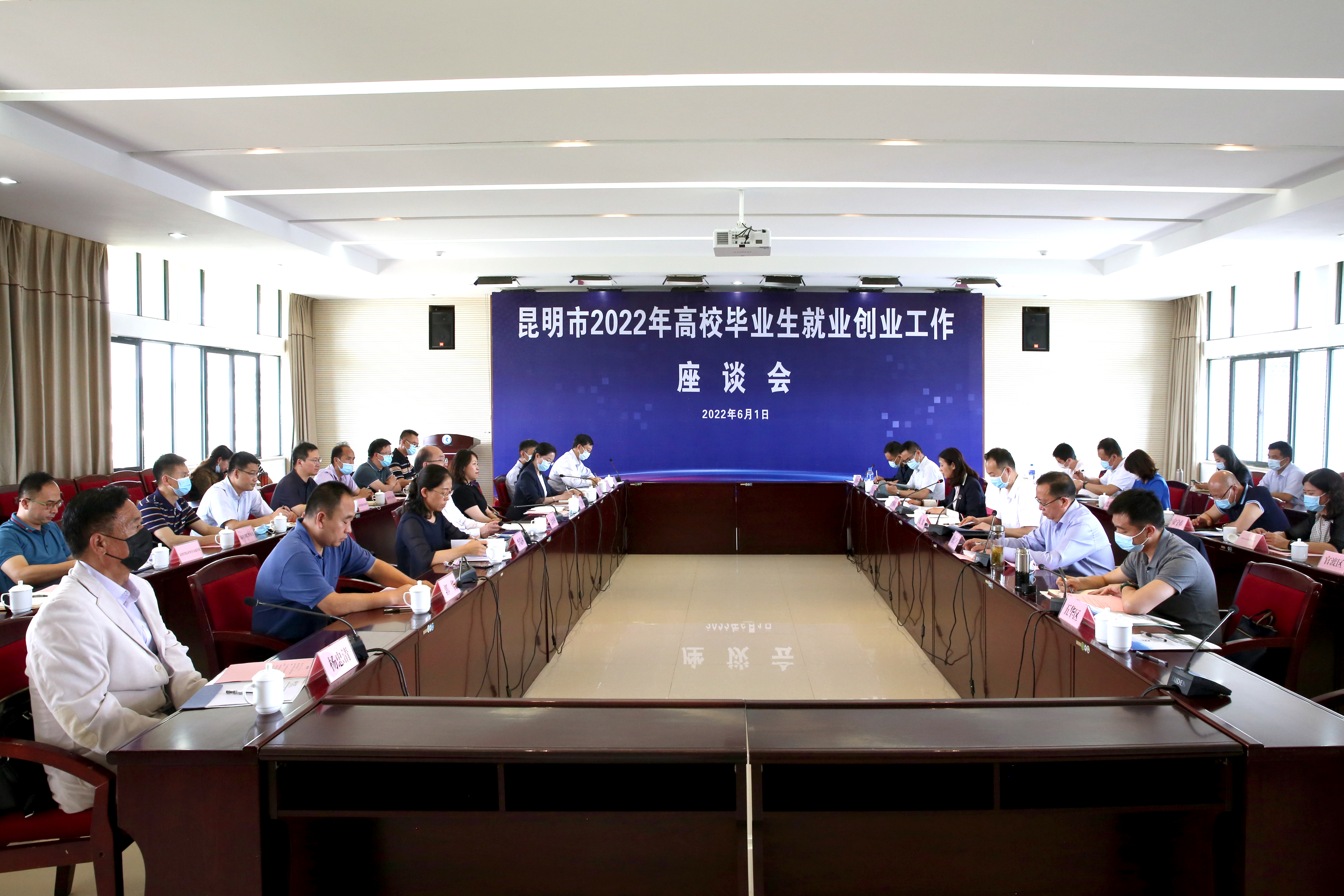 昆明市人力资源和社会保障局、教育体育局,五华区、安宁区、呈贡区政府,昆明铁道职业技术学院、昆明幼儿师范高等专科学校等市属高校参加座谈会、招聘会。