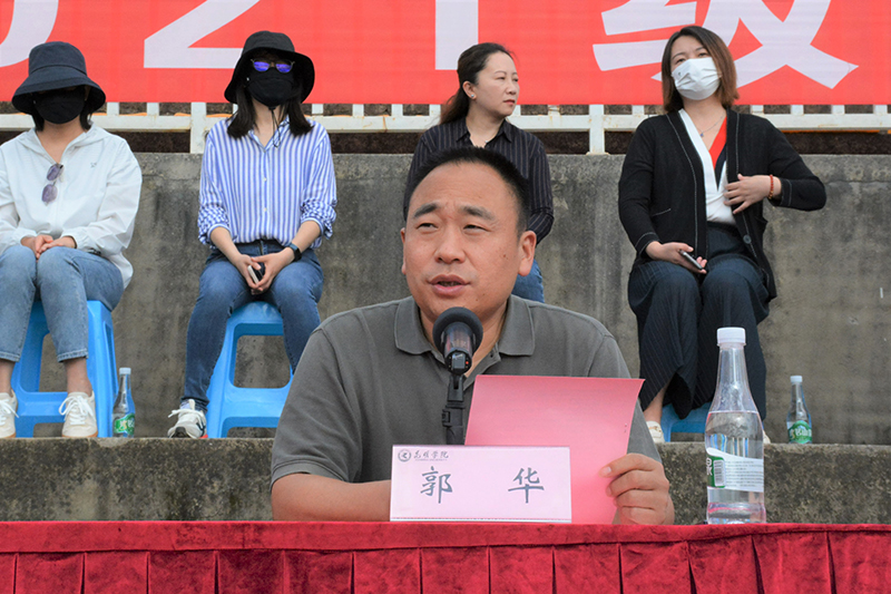 郭华副校长向军训团授旗并宣布beat365英国官方网站2021级新生军事训练开训。