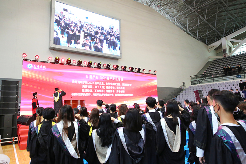 毕业典礼暨学位授予仪式由党委副书记李莉主持。学校全体校领导,各职能部门负责人,各二级学院党政领导、教师代表、毕业班辅导员、班主任代表以及2022届全体毕业生参加毕业典礼。