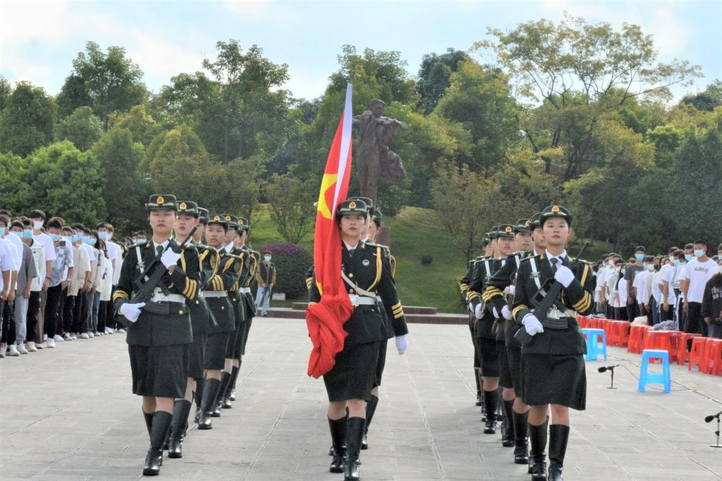 在雄壮激昂的国歌声中,五星红旗迎着朝阳冉冉升起。在国旗的映照下,校友《聂耳》像熠熠生辉。开学典礼拉开序幕,弦歌不辍,继往开来。