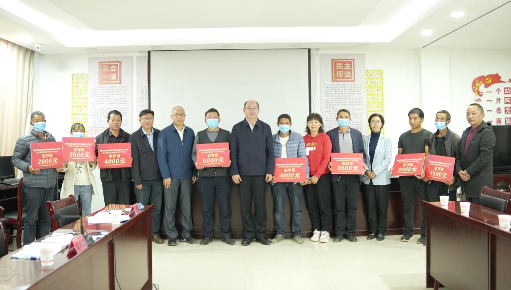 会上,金幼和为九龙镇定点帮扶村2022年新入学大学生家长代表发放奖励助学金并向家长们表示祝贺。