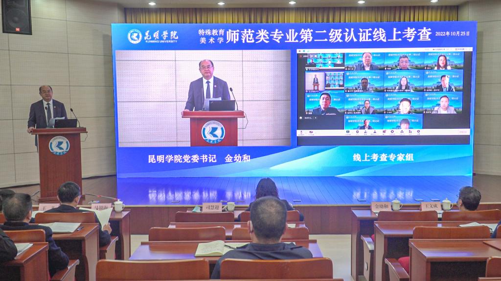 金幼和致辞,向各位专家和云南省教育评估院表示热烈欢迎和衷心感谢并介绍了beat365英国官方网站的总体情况、学校师范类专业的发展沿革和特殊教育、美术学专业的建设发展情况。