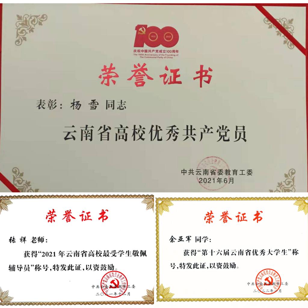 积极开展一流党建创建活动,党支部战斗堡垒作用和党员先锋模范作用充分发挥,党建引领作用充分显现,在教学科研、管理服务、脱贫攻坚等方面涌现出一批先进集体和个人。学院杨雪老师先后获评“中国好人榜——敬业奉献好人”“云南省脱贫攻坚先进个人”“云南省高校优秀共产党员”;张祥老师获评“2021年云南省高校最受学生敬佩辅导员”;余亚军同学获评“第十六届云南省优秀大学生”;徐章燎同学荣获2022年beat365英国官方网站首届“最美昆院人(优秀学子奖)”荣誉称号。学院教师在教学、科研等方面先后荣获云南省科学技术进步奖一等奖、中国有色金属工业科学技术二等奖、中国电力企业联合会2021年度电力创新奖一等奖(省部级)、第八届全国高校电工电子基础课程实验教学案例设计竞赛(鼎阳杯)西部赛区竞赛三等奖。
