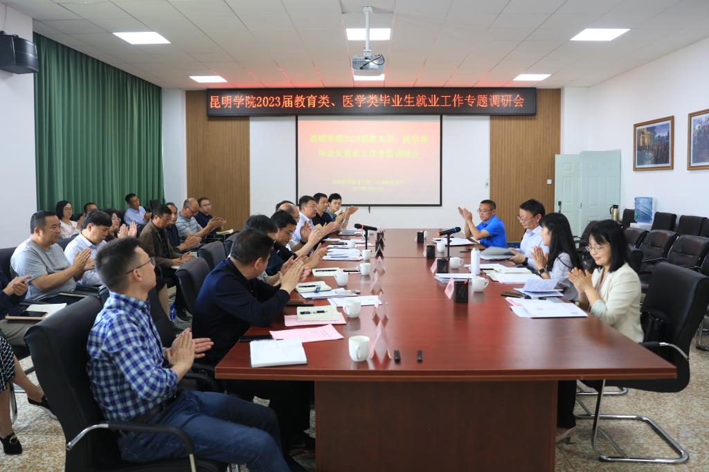 金幼和表示,学校高度重视就业工作,把毕业生就业创业放在更加突出的重要位置,作为学校重大政治任务,列入学校党委、行政重要议事日程,认真落实就业工作“一把手”工程。今年以来,全校上下深入学习贯彻党的二十大精神,全面落实党中央、国务院和省委、省政府“稳就业”“保就业”决策部署,按照省委教育工委、省教育厅要求,千方百计推进2023届毕业生高质量充分就业。陈世波副书记就怎样深入抓好beat365官网教育类、医学类专业毕业生就业工作提出了明确要求,给予了指导意见建议,我们要深入学习领会,逐项分析研究,积极采取措施,认真抓好落实,以时时放心不下的责任感和紧迫感,推进毕业生更充分更高质量就业。