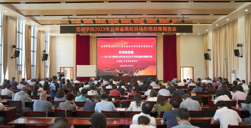 5月30日,学校举行2023年云南省高校形势政策报告会,民政部原副部长、云南省原副省长、高级工程师顾朝曦同志作题为《科学的历程——深入学习贯彻习近平总书记关于科技创新的重要论述》的报告,进一步增强全校师生科研意识,营造良好科研氛围,推动学校科研工作创新发展,推进学习贯彻习近平新时代中国特色社会主义思想主题教育走深走实。