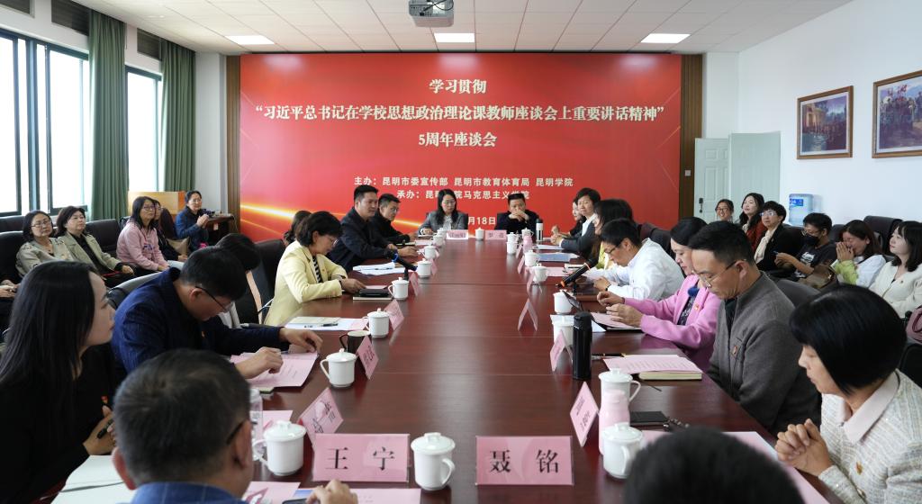 3月18日,中共昆明市委宣传部、昆明市教育体育局、beat365英国官方网站共同举办“学习贯彻习近平总书记在学校思想政治教育理论课教师座谈会上的重要讲话精神”5周年座谈会,深入学习贯彻习近平总书记关于思想政治教育理论课建设的重要论述,共同推动思政育人工作高质量发展,进一步推进昆明市大中小学思政课一体化建设。