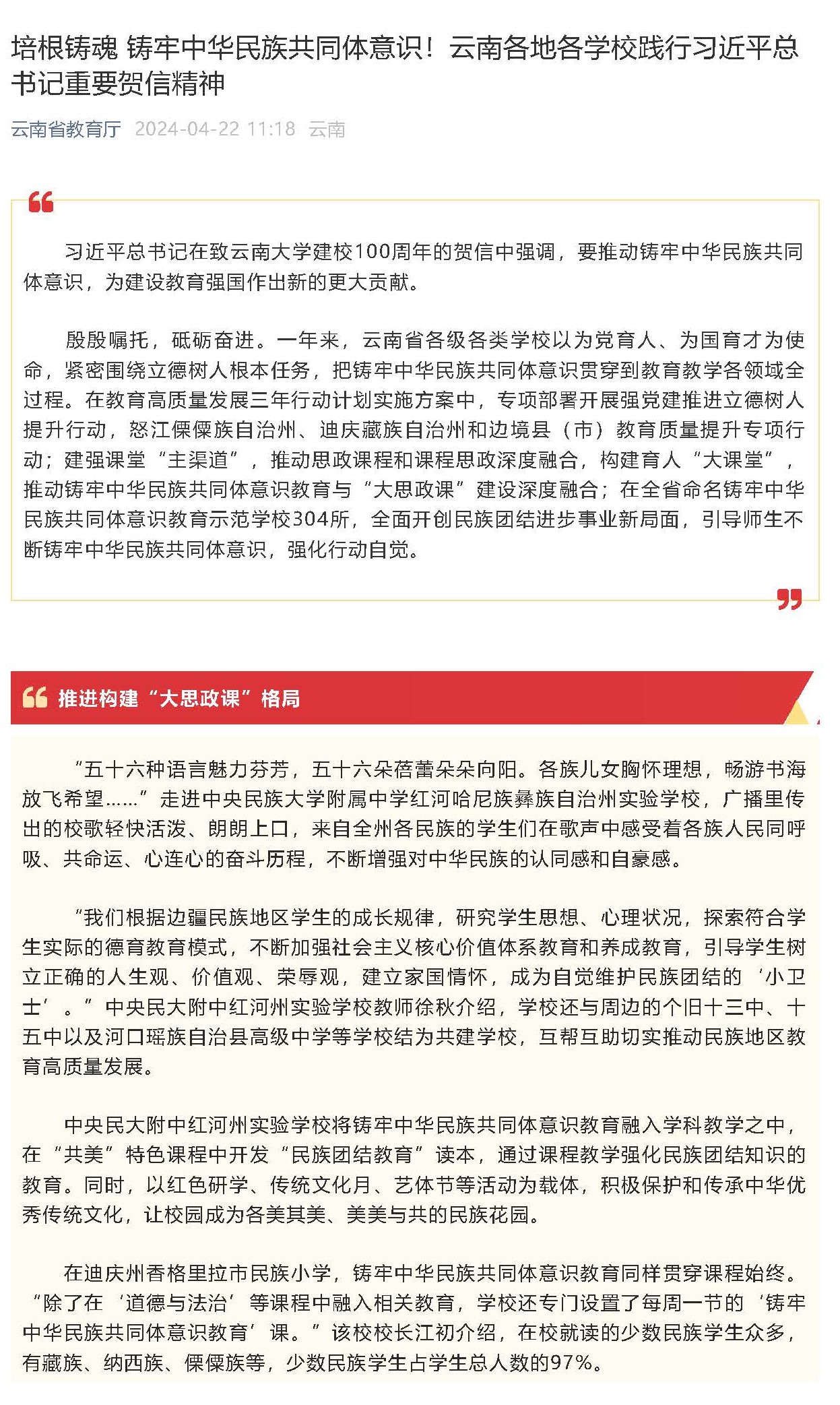 培根铸魂 铸牢中华民族共同体意识!云南各地各学校践行习近平总书记重要贺信精神