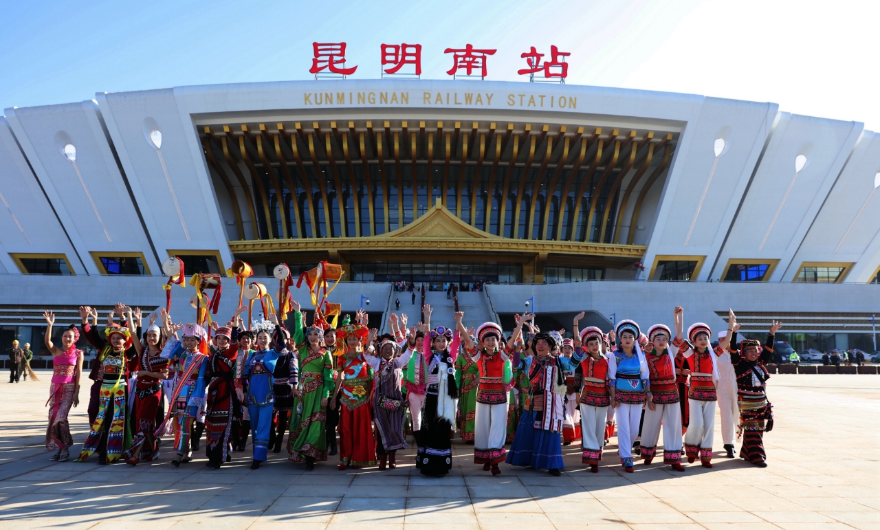 中老铁路开通当日,各族人民齐聚昆明南站(付世凯/摄)
