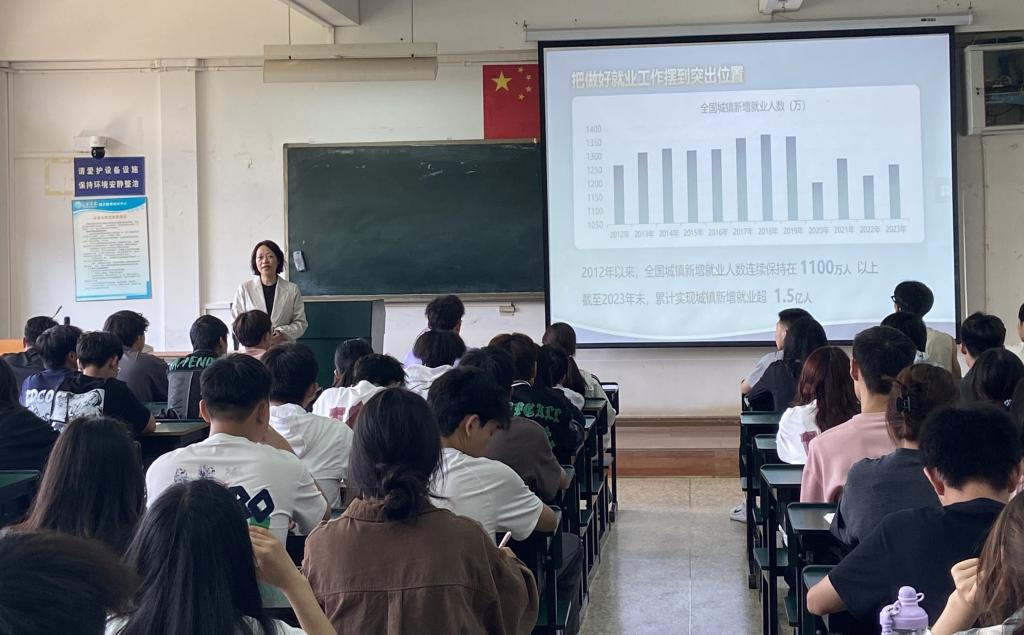 课程围绕“走好新时代科技自立自强之路”“当前就业形势与实施就业优先战略”“当前国际形势与中国原则立场”等专题,扎实推动习近平新时代中国特色社会主义思想进课堂、进教材、进头脑,帮助广大青年学生深入学习领会习近平新时代中国特色社会主义思想和党的二十大精神,深入理解坚守马克思主义中国化时代化的“魂脉”和“根脉”的重大意义,引导同学们正确认识世界和中国发展大势。授课既有深刻的理论、生动的讲述,也有同频共振与同感共情,激发了同学们肩负历史使命,坚定前进信心,立大志、明大德,成大才、担大任,投身强国建设、民族复兴的责任感、使命感。