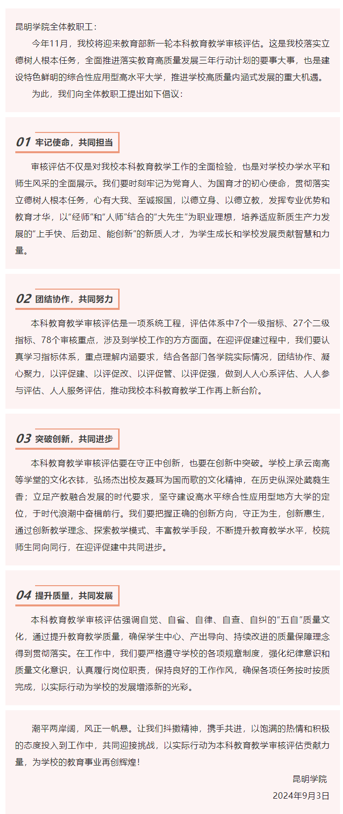 迎评有我 共铸辉煌|beat365英国官方网站本科教育教学审核评估致全体教职工倡议书