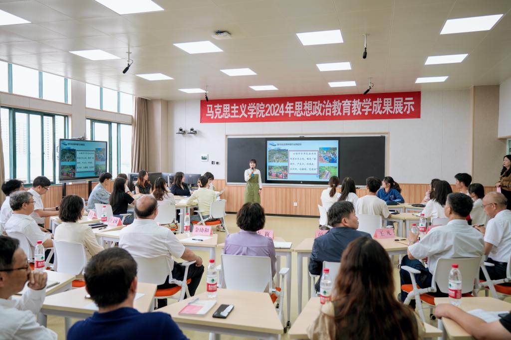 会前,与会人员现场观看了马克思主义学院思政课教育教学成果展示。