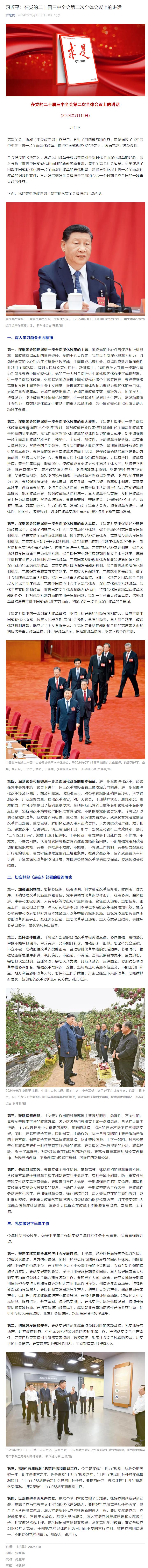 习近平:在党的二十届三中全会第二次全体会议上的讲话