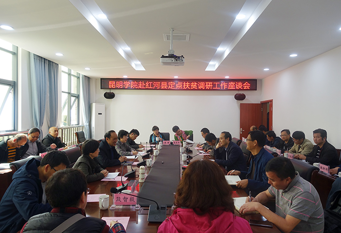 2019年3月6日、7日,学校党委书记陈永明、党委副书记熊晶、纪委书记魏萍、副校长王凡等一行16人赴省级脱贫攻坚挂联点红河县调研“挂包帮”扶贫工作,推进学校2019年扶贫工作走深、抓细、做实、见效,实现真扶贫、扶真贫。