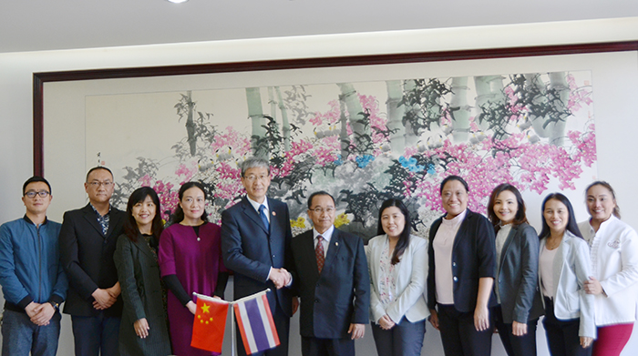 3月19日,泰国南邦皇家大学(Lampang Rajabhat University)校长 Somkiat Saithanoo先生、管理科学学院院长Natthanan Thitiyapramote女士、人文与社会科学学院副院长Saowaree Boonsa女士等一行7人来访beat365官网。学校副校长董建华热情接见了Somkiat Saithanoo校长一行,beat365官网人文学院和国际交流合作处相关人员参与了会谈交流。