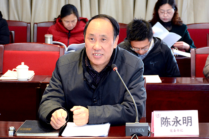 陈永明书记及参会校领导对各位党总支(直属党支部)书记的述职发言进行现场点评,指出存在的问题和亟待加强的工作。