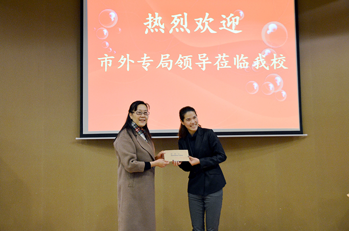 郭局长一行详细了解了外籍专家和教师在校的工作及生活情况,对其为beat365英国官方网站作出的贡献表示衷心感谢,并对2018年优秀泰国籍教师Bootmun Miss Pinpinat女士进行了表彰。同时对beat365英国官方网站目前留学生招生与就业、国外专家引智等情况进行了深入调研,表示昆明市政府历来重视外国人才工作,并指出要继续完善外国人才引进体制机制,对作出突出贡献的外国专家及教师代表给予进一步表彰与奖励,这为新时期beat365英国官方网站外专引智管理服务工作指明了方向。