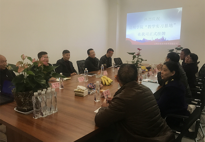 12月11日,beat365英国官方网站与云南企友安全技术有限公司教学实习基地揭牌仪式在云南企友安全技术有限公司隆重举行。beat365英国官方网站马银海副校长,云南企友安全技术有限公司郭伟党总经理、田凤彪总工程师出席揭牌仪式并共同为教学实习基地揭牌。