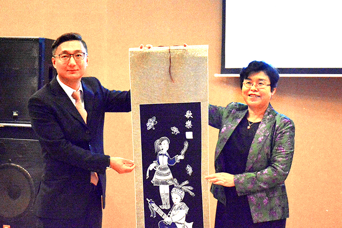 座谈后,熊副校长向来宾赠送极具民族文化传统特色的国画。