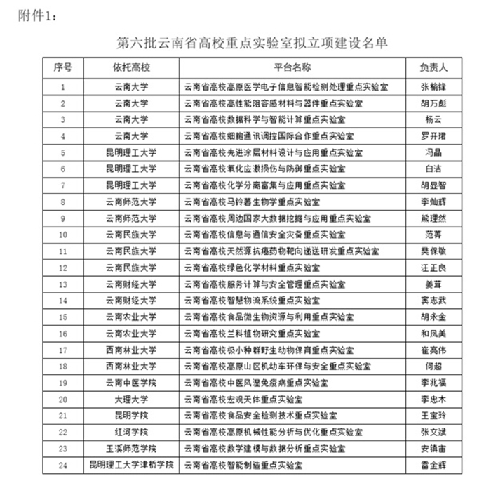 近日,云南省教育厅批准立项24个省高校重点实验室和41支省高校科技创新团队。化科系“云南省高校绿色有机资源化学科技创新”团队、 “云南省高校食品安全检测技术重点实验室”成功获批立项。