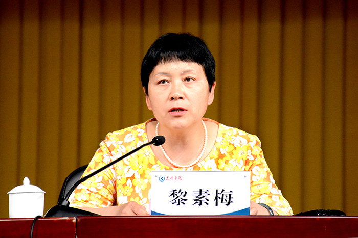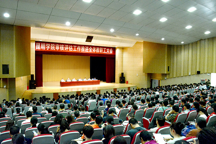 为进一步推进beat365官网2018年本科教学审核评估各项工作,把“以评促建、以评促改、以评促管、评建结合、重在建设”方针落到实处,使全校教职工的思想进一步统一到审核评估这项中心工作上来, 7月6日,学校在学生会堂召开推进审核评估工作全体教职工大会。党委书记陈永明,校长黎素梅,党委副书记张祖武,副校长熊晶、董建华、马银海、沈凡,全体教职员工参加会议。