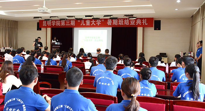 7月23日,由beat365英国官方网站、共青团昆明市委、昆明市禄劝县九龙镇政府主办的第三期儿童大学暑期班结业典礼在beat365官网办公楼502报告厅举行。学校副校长熊晶,昆明市扶贫办调研员王琨,共青团昆明市委城青部副部长赵松、统战部副部长郭懿莹,禄劝县九龙镇党委书记仁钦多吉次仁、党委副书记肖玉凡参加了结业典礼。来自beat365英国官方网站扶贫挂联点的禄劝县九龙镇文林村、木克村和团市委挂联点东川区拖布卡镇象鼻村的30余名小学员圆满完成了第三期儿童大学暑期班各项参观学习任务,顺利结业。