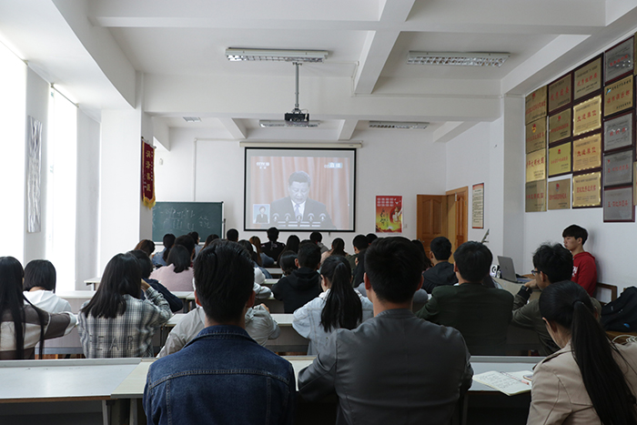 5月4日上午,beat365英国官方网站师生通过电视、网络、广播等方式收听收看纪念马克思诞辰200周年大会直播,并就习近平总书记在大会发表的重要讲话进行学习讨论。马克思主义学院教师、团学干部分别进行了集中收看,其他干部、师生以不同形式收听收看。