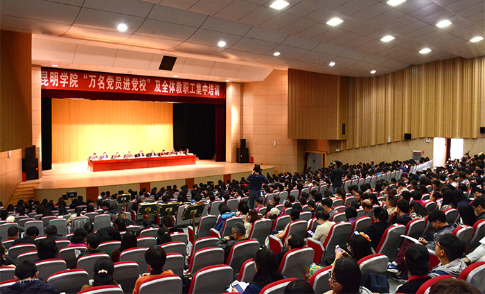 4月20,beat365英国官方网站“万名党员进党校”及全体教职工集中培训工作在学生会堂启动。学校党委书记陈永明出席并作专题报告,党委副书记张祖武主持会议并作动员讲话,纪委书记王映平,副校长熊晶、郭华、董建华、马银海和全校教职员工1700余人参加会议。